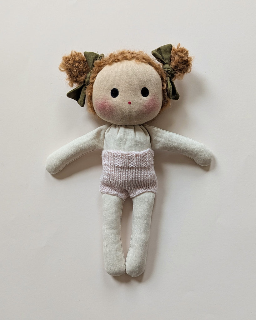 Daisy is a lovable waldorfstyle doll with soft cinnamon brown hair and a linen blend body ready for dressing up and imaginative play. Her hair is hand-knitted in a soft, natural mohair yarn