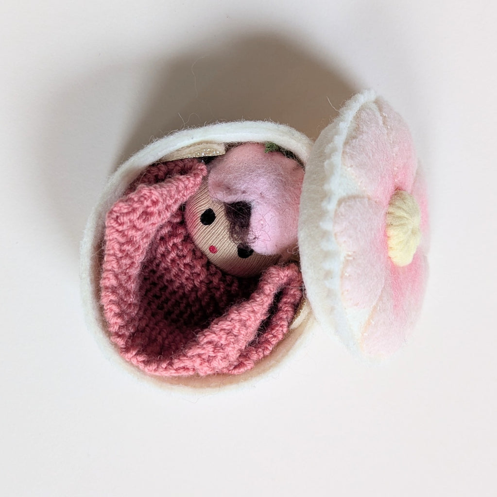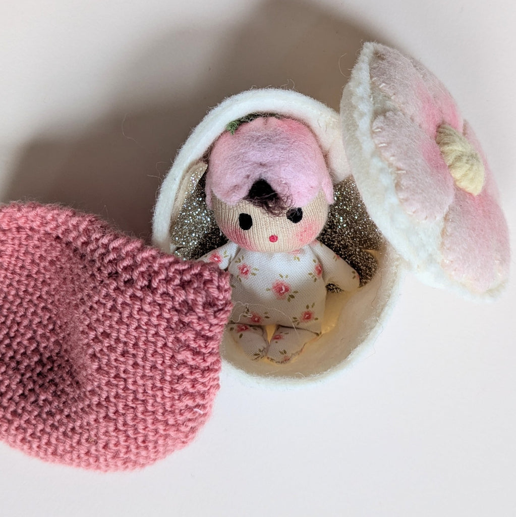 This is a one of a kind set containing a Flower Fairy and a tiny merino blanket in a Handmade Wool felt flower box. A perfect gift for someone who loves tiny things 🌸
